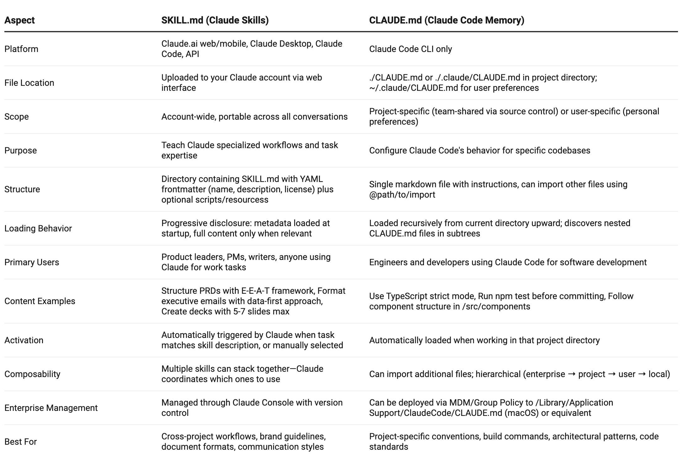 Remember this analogy: Memory says, “We’re working on the Q4 roadmap.” Skills say, “Here’s exactly how we format all roadmaps at this company.”