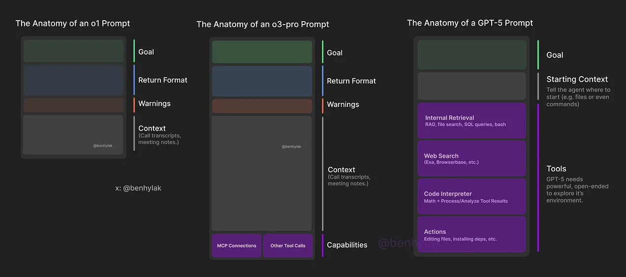 Prompting a model is no longer just typing a question. With GPT-5, it is more like directing an agent or even a set of agents. Your prompt needs to be well-thought-out and logically aligned. It should be clearly structured so the model can move forward, gather the right information using its tools, and then build the product for you.