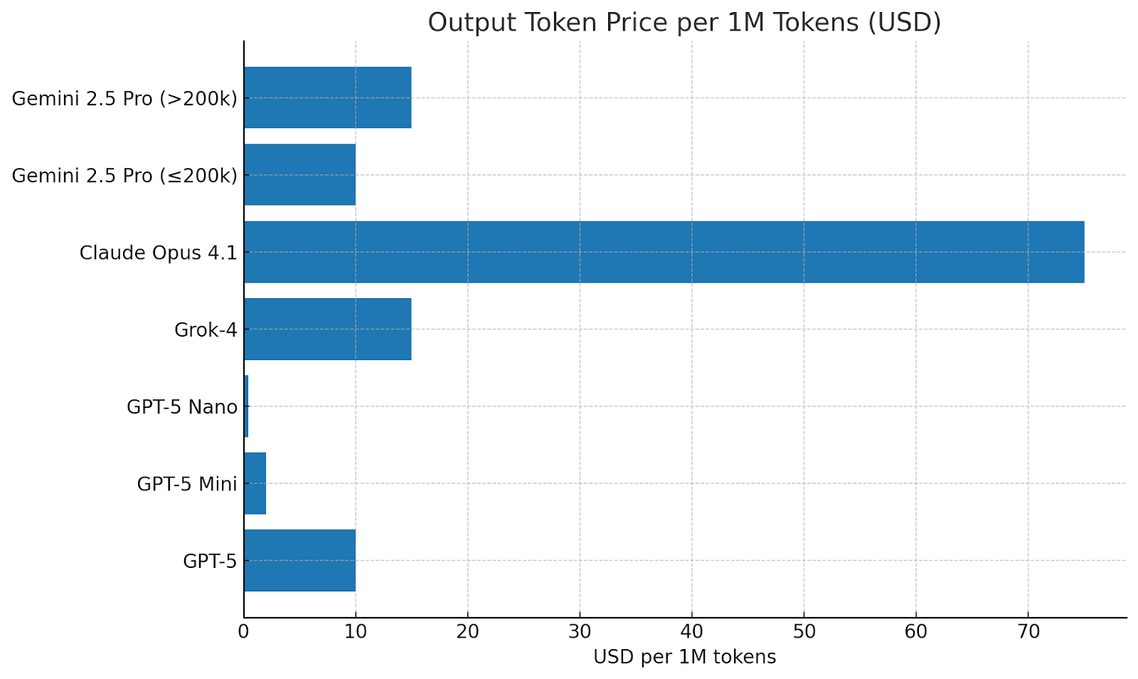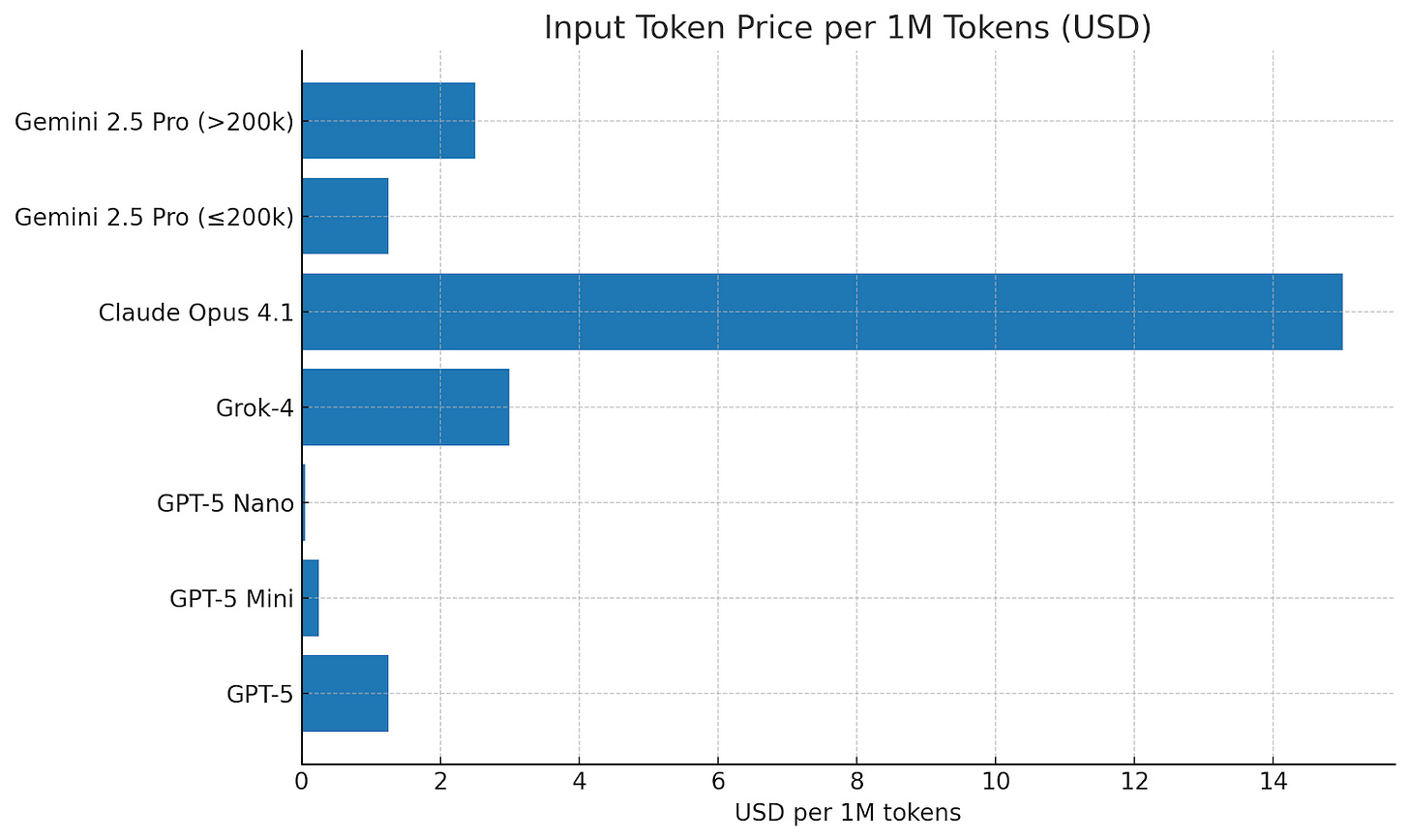 GPT-5 is more affordable than Grok-4 and Anthropic’s Claude Opus 4.1, and in many cases undercuts Google’s Gemini models.