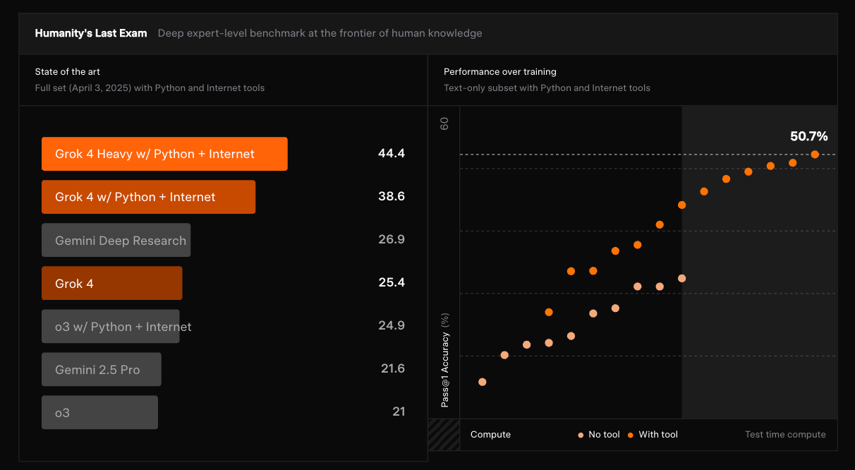 On humanity’s last exam benchmark score, GPT-5 still lags behind Grok-4.