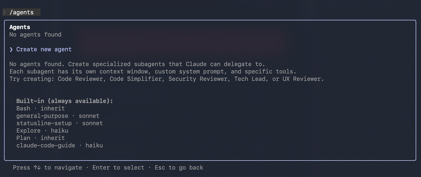 To create an agent in CC use “/agents”