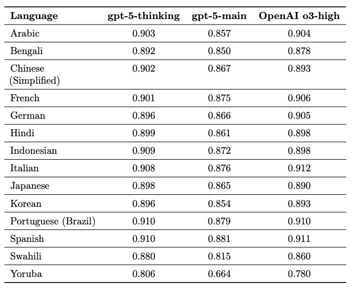 When it comes to GPT-5 we see that both of its variants, GPT-5 Thinking and GPT-5 Main, performed well over 80% except one compared to o3-high.
