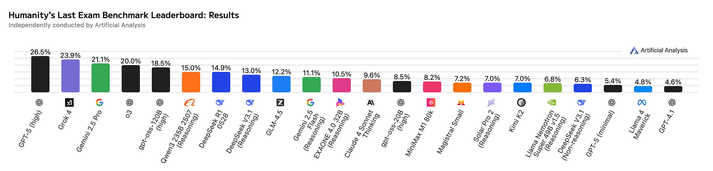Humanity’s Last Exam Leaderboard Deep-Dive: GPT-5, Grok-4, Gemini 2.5 Pro vs Humans