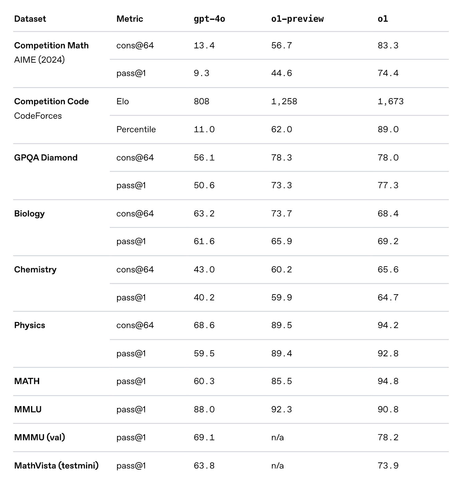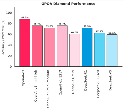 On the GPQA Diamond benchmark, designed to test PhD-level science questions, OpenAI o3 scores around 87.7%. This level of performance indicates a robust internal reasoning process that traditional LLMs lack.