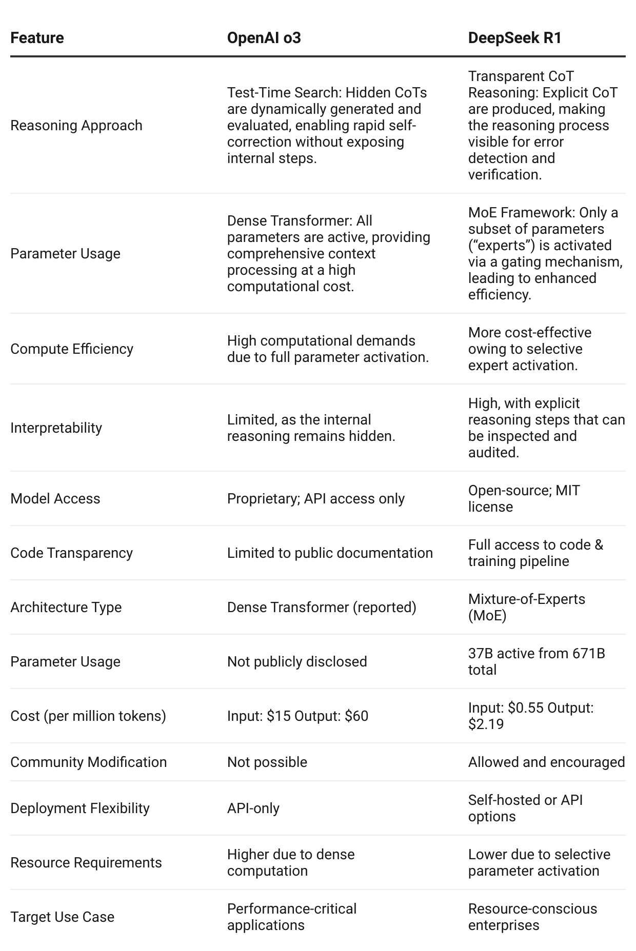 Self-verification mechanisms: Both o3 and DeepSeek R1 incorporate internal verification processes. For example, o3 uses a verifier model to check candidate solutions, ensuring that the final output is robust and reliable. This combination of efficiency and deep reasoning is key to scaling intelligence.