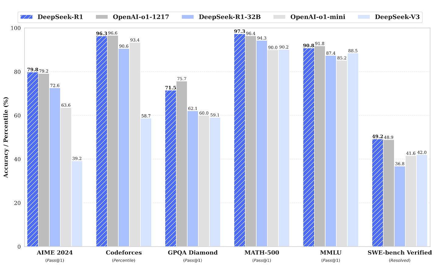 AIME (American Invitational Mathematics Examination) 2024 Results: Measures multi-step mathematical problem-solving and logical deduction. It tests models on complex arithmetic and algebraic problems that require sequential reasoning.