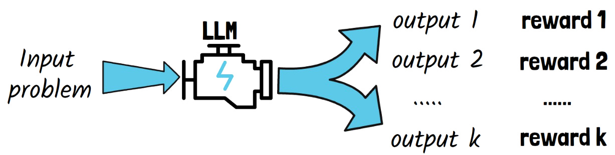 A verifier or evaluator model assesses these candidates, selecting the one with the highest score as the final output. This selection process helps filter out errors or hallucinations and ensures robust decision-making.