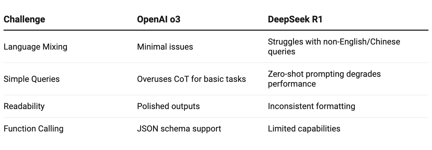 This cost-reasoning gap forces businesses to choose to prioritize accuracy (o3) for mission-critical tasks or optimize budgets (R1) for high-volume workflows.
