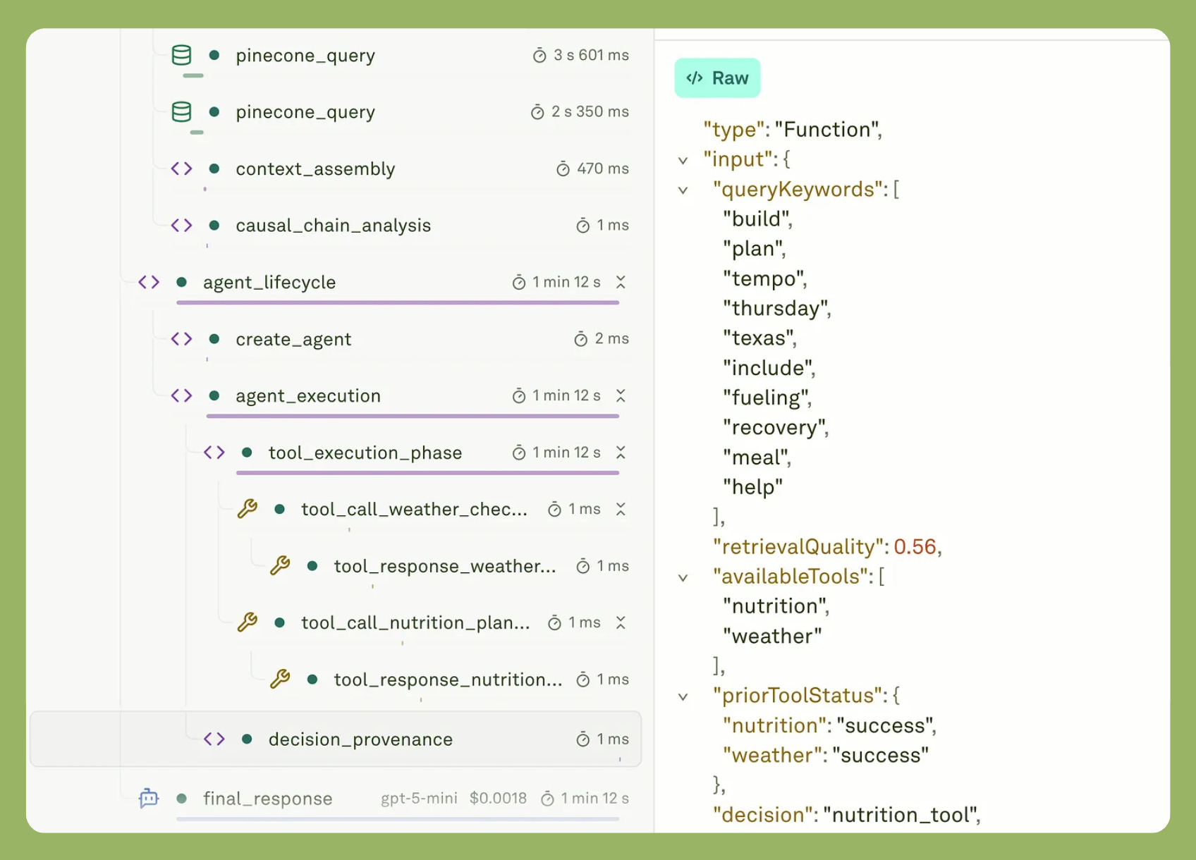 Real example from my running coach app. The agent chose weather_tool over nutrition_planner. Why? The trace revealed three factors.