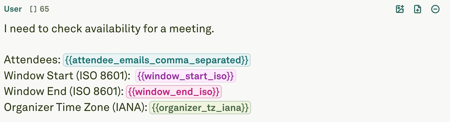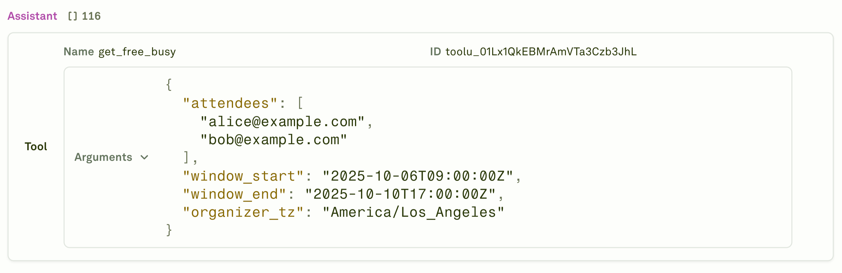 You can see that the variables adhere to the “policy” described in the system prompt and will not contradict each other. As such, the tool call made by the LLM will be successful.