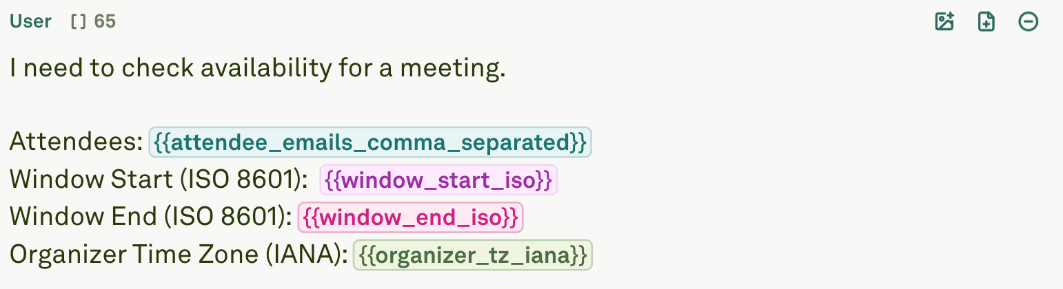 Now, once the system message is ready, you can add a user message to the prompt that simply takes in the required variables from the users.